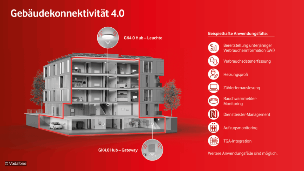 Vodafone Deutschland stellt mit Gebäudekonnektivität 4.0 eine IoT-Infrastruktur bereit, die Immobilienverwaltungen beim Betrieb, der Analyse und der Optimierung ihrer technischen Anlagen unterstützen soll.